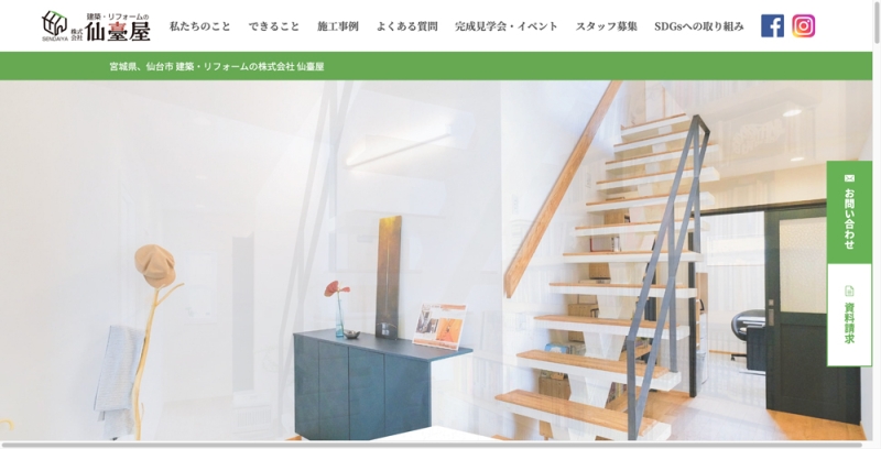 「暮らしを創る」をコンセプトに、家族全員が自然と笑顔になれる空間づくりを目指す「仙臺屋」。丁寧なヒアリングでお客様の悩みやこだわりを受け止め、期待を超える「+α」の提案を行うのが特徴です。