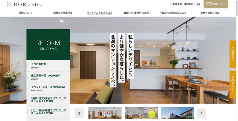 「北洲リフォーム」は、経験豊富なプランナーが丁寧なヒアリングを行い、暮らしの不便や理想を踏まえた最適なプランを提案する会社です。家事動線を意識した使いやすい設計はもちろん、インテリア・家具・照明まで含めたトータルコーディネートにも対応しています。