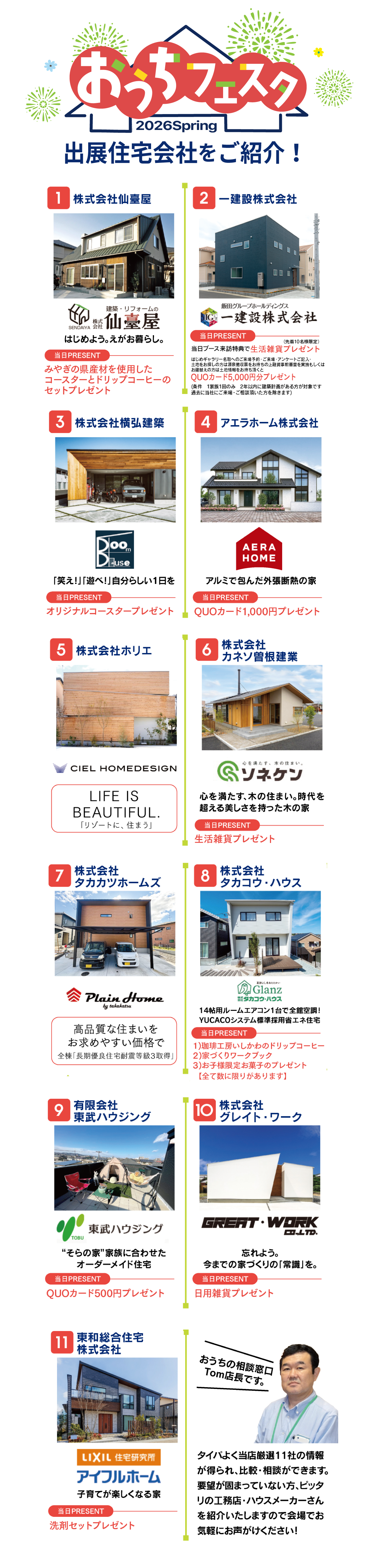 仙台エリアの住宅会社11社が一挙大集合で比較検討できます!